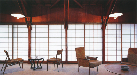 Shofuso’s architect, Junzo Yoshimura’s mentor, Noemi and Antonin Raymond settled at Raymond Farm in 1939, and modified a 18th century Quaker farmhouse with Japanese architectural elements. In 1943, the Raymonds vouched for George Nakashima and his family from the internment camp. A few years later, Nakashima established Nakashima Woodworkers in New Hope near Raymond Farm. George Nakashima designed and built this studio and residence with his knowledge and experience working at the Raymond’s architectural firm with Junzo Yoshimura in Japan.